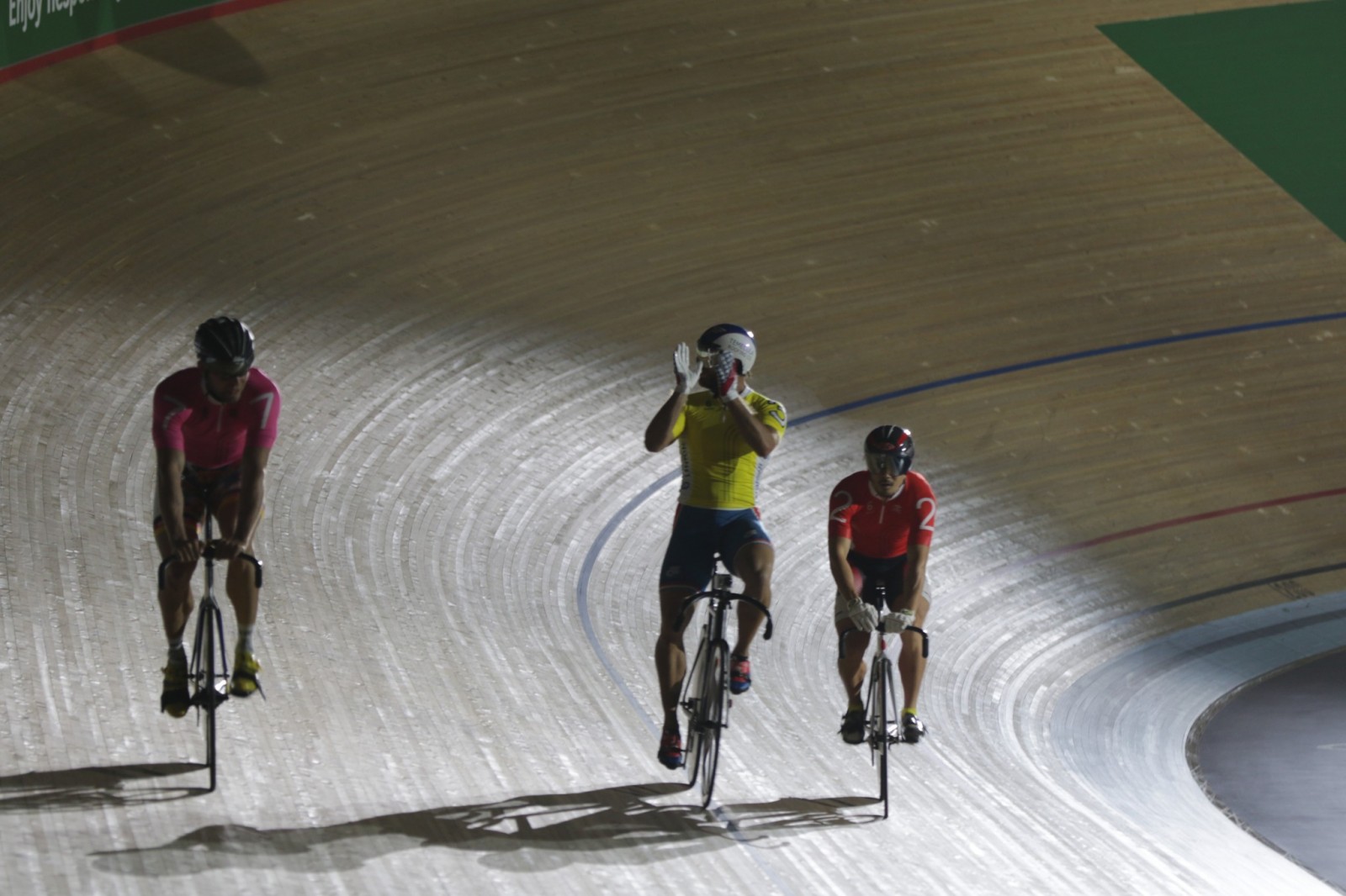 Six Day Cycling returned to London at the Velodrome on the Queen Elizabeth Olympic Park with a cracking sound track curtsey of the Ministry of Sound. On a Sunday afternoon, after taking part in a duathlon myself, I was unsure what to expect at my first ever cycling event. What a fantastic afternoon, the atmosphere was electric, with event including the Madison, Sprinters races and some funny little event where cyclists have to balance on their bikes not crossing the line until the gun goes off and then it’s hell for leather around the track. Riders from all over the world came to take part in the event. I was hoping to see Mark Cavendish or Chris Hoy, but they came to the event later on in the week.
